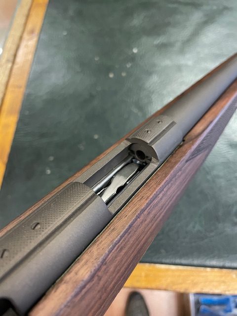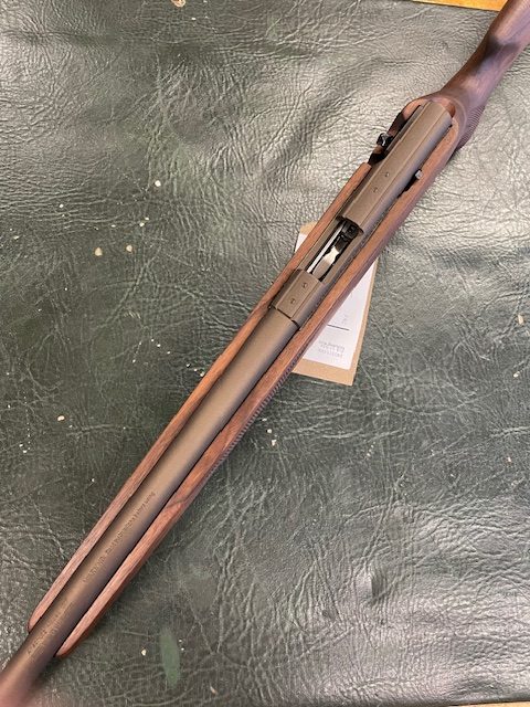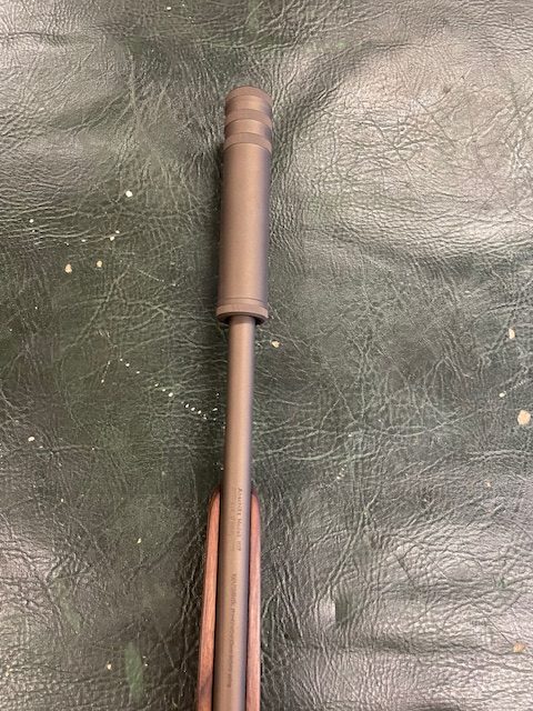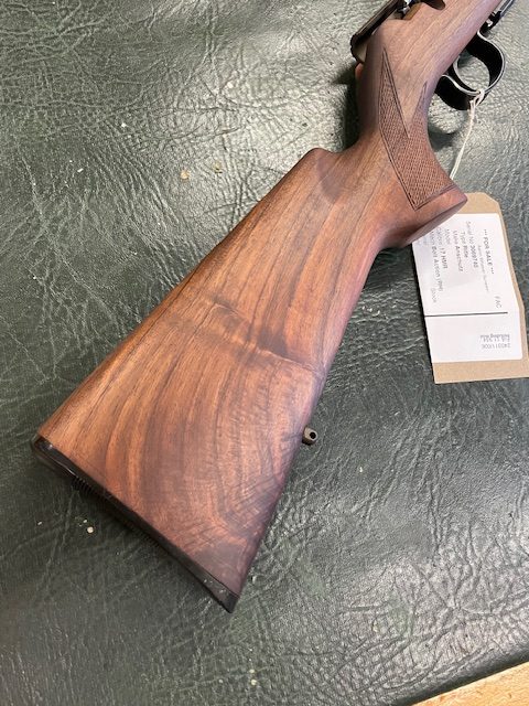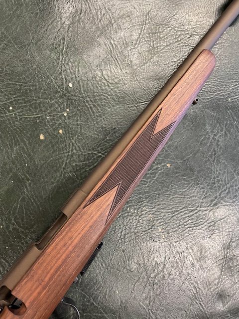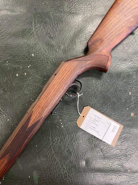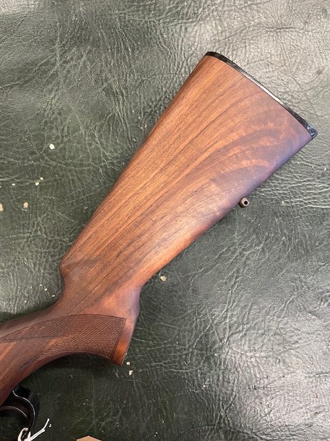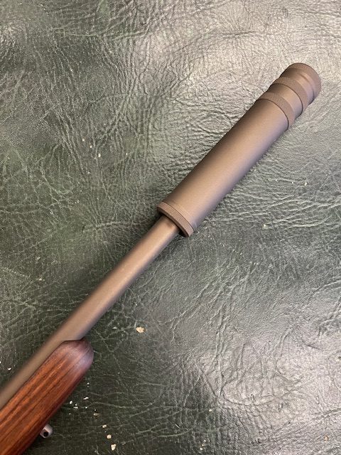 This gun has been through our work shop, the stock has been stripped and re-oiled, the metal work (Barrel, Action and Hardware) as well as the Wildcat .17HMR Whisper has been Cerakoted in Midnight Bronze H-294
