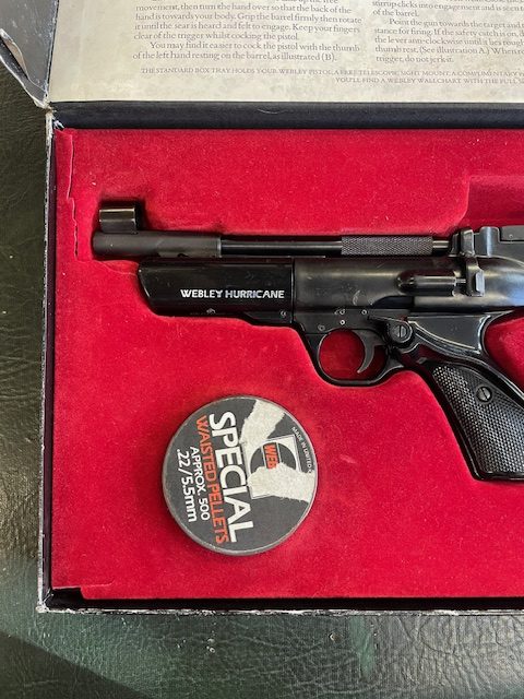 Boxed, in overall good condition, typical wear on the packaging, red plastic liner is cracked on the corners however still holding together. Pellet tin has had the label ripped slightly, see photos…